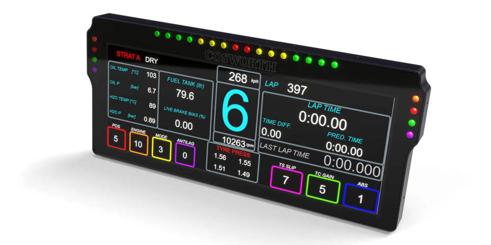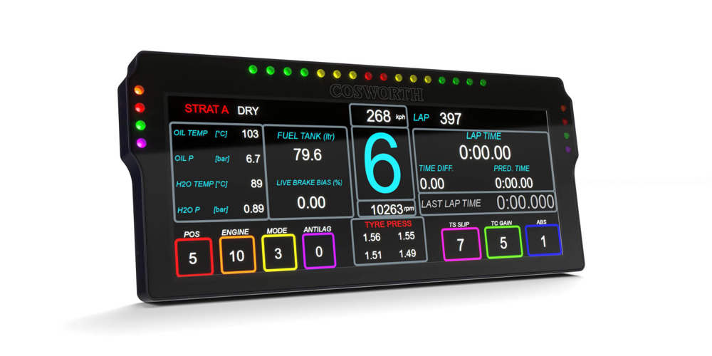 The template, display, LEDs and brightness are all fully configurable and controlled over Ethernet via a Cosworth device. The CDU 10.3 also features USB logging, so data files can now be pushed to a USB device to make the offload of data easier than ever. All of this is packaged in an ultra slim aluminium case only 23mm thick.